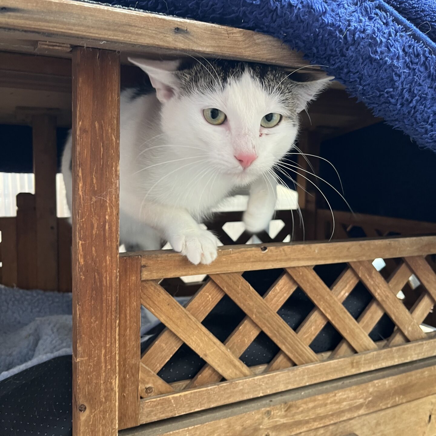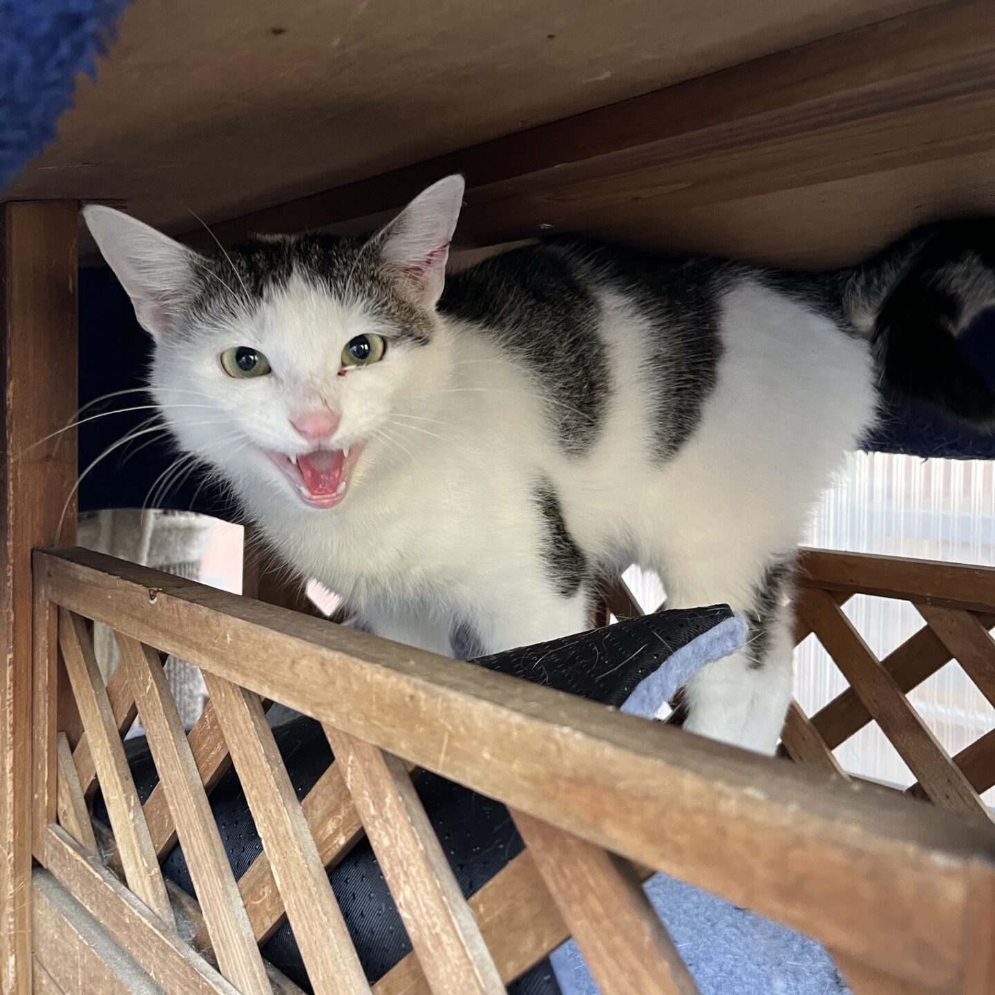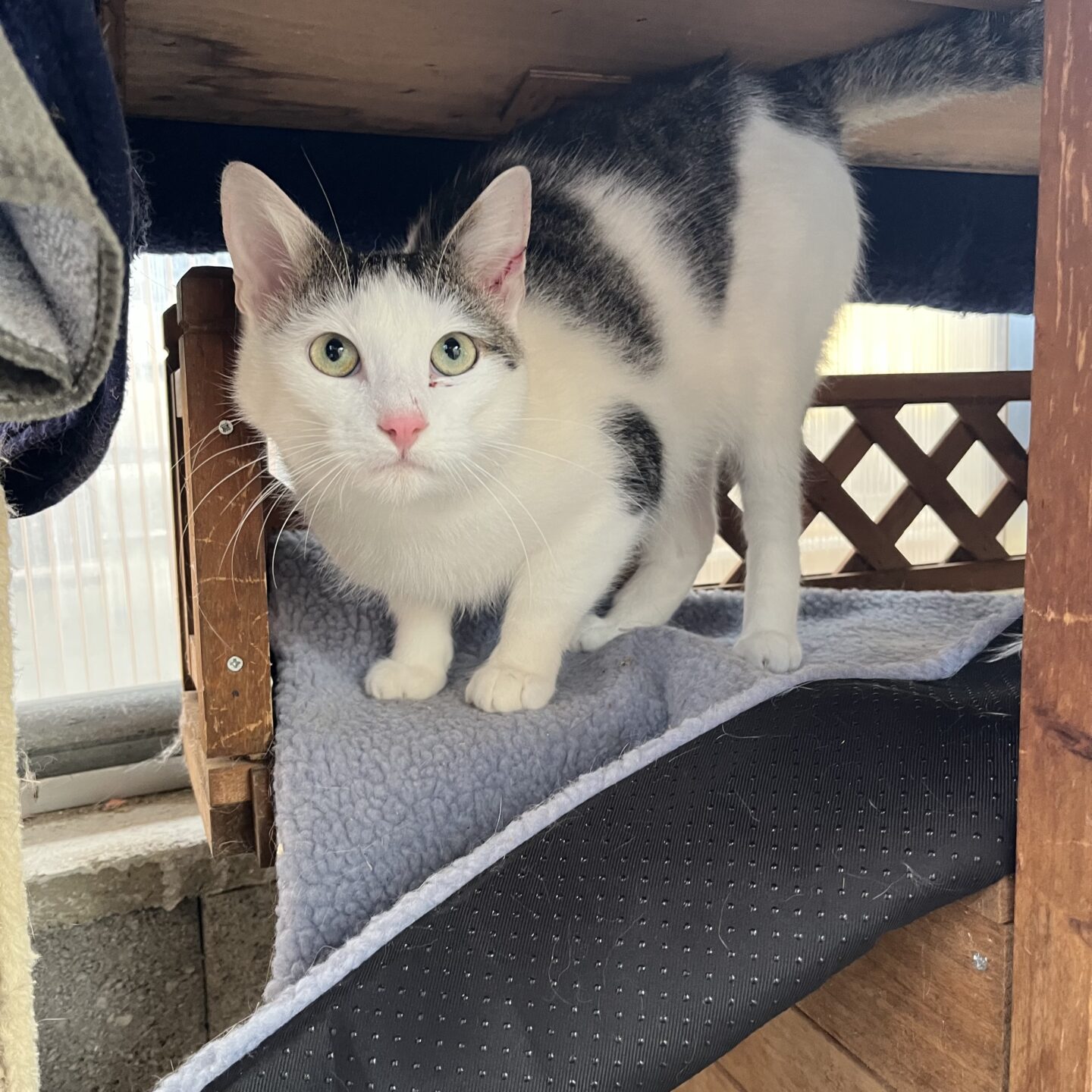 Farbe:weiß mit getigerten Flecken