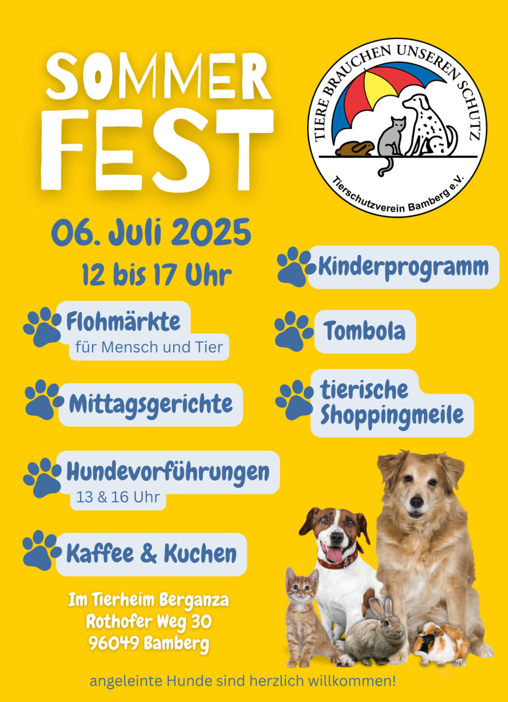 Wir laden ech herzlich zu unserem Sommerfest am 06.07.2025 ein. Wie jedes Jahr lohnt sich ein Besuch bei uns. Für euer leibliches Wohl , aber auch für eure Unterhaltung ist gesorgt. Schaut euch unsere Tiere an und schlendert über unsere Shoppingmeile für Mensch und Tier.